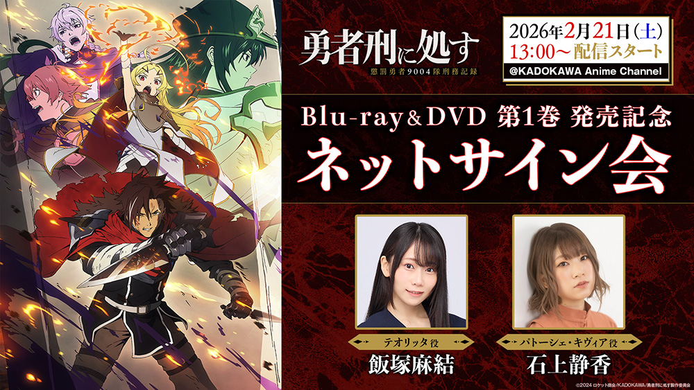 TVアニメ「勇者刑に処す 懲罰勇者9004隊刑務記録」Blu-ray&DVD第1巻の発売記念!カドストにてネットサイン会の実施が決定!